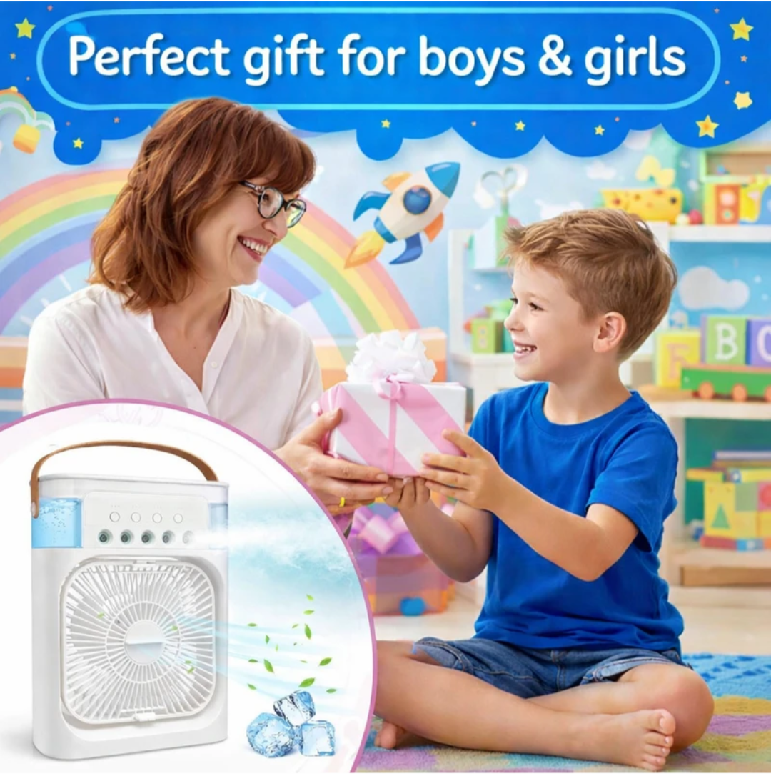 Just add water in the tank, switch on the Water Spray, and enjoy cool misty air. The Mini Air Cooler Fan with Water Spray gives you a mini AC feeling without heavy electricity bills. Super cool, super smart. Carry this Portable USB Cooling Fan anywhere because it's lightweight and easy to move. This Mini Air Cooler Fan is perfect for room use, desk use and outdoor use. Whether you are gaming, studying, working or relaxing, this Portable USB Cooling Fan makes your space instantly cooler and more comfortable. If you want strong cooling with style, this Mini Air Cooler Fan with Water Spray is a must-have. This Portable USB Cooling Fan is trendy, powerful and totally Gen-Z approved. Summer heat? Not a problem anymore